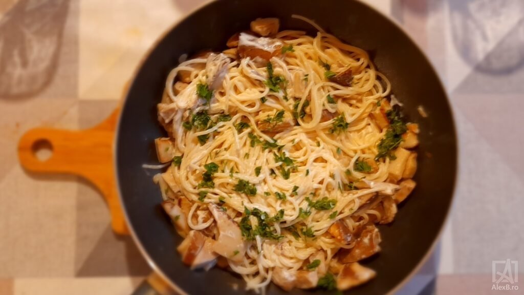 Am mancat-o cu paste. Nu are un gust puternic, dar este foarte placut: un gust suav. Pizza a fost cu hribii gasiti cu aceeasi ocazie.