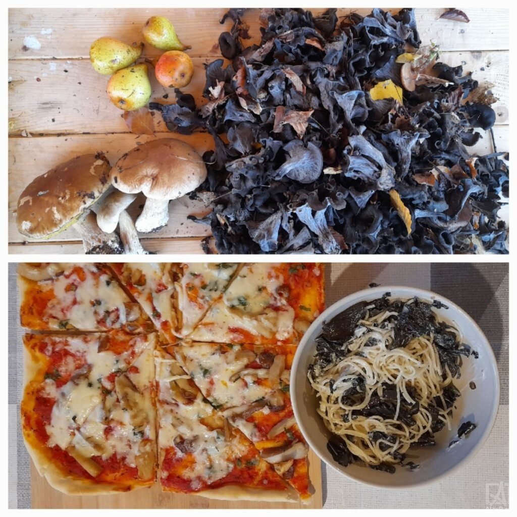 Hribii au fost consumati – o parte din ei – dupa cum se vede. Iar o alta parte au fost pusi la congelator, iar sotia ne rasfata din cand in cand cu o pizza excelenta. Bine de stiut: daca ii pui in pungi la congelator nefierti, isi pastreaza un gust mult mai bun. Dezavantajul este ca ocupa mai mult loc decat pungile cu hribi fierti.